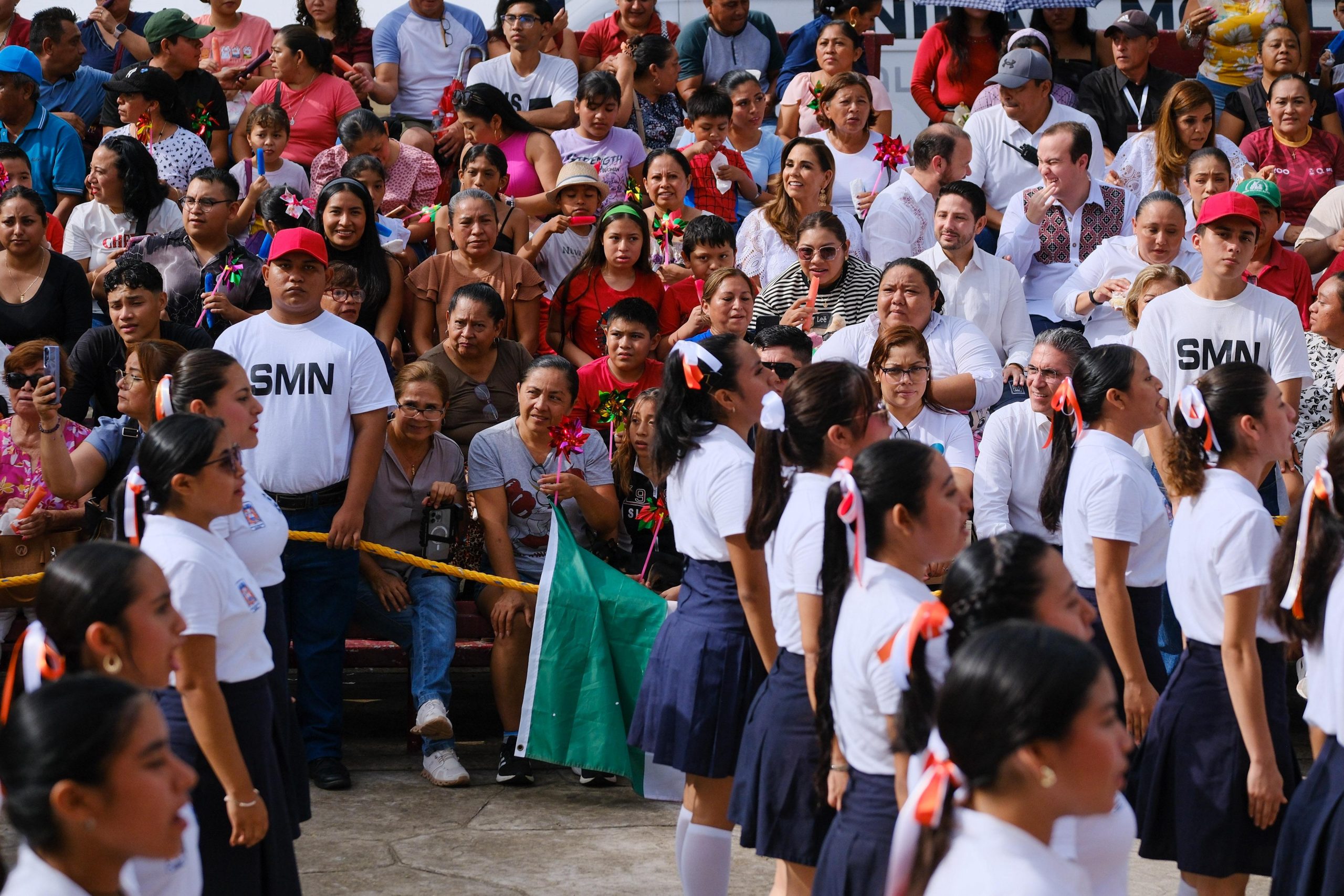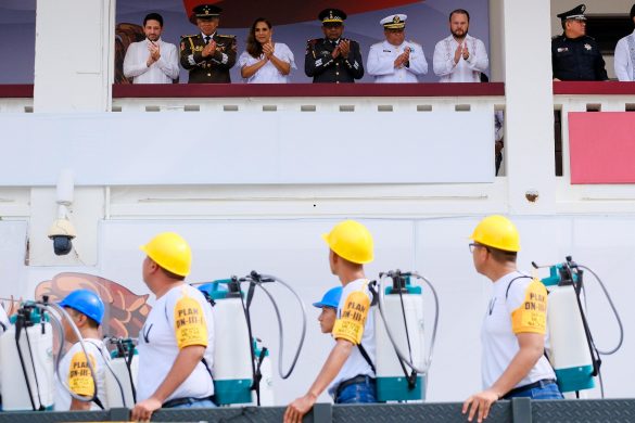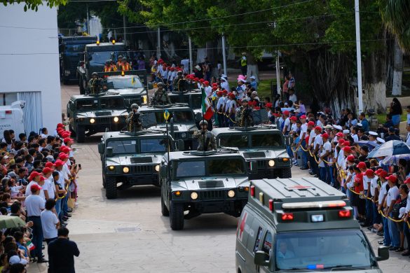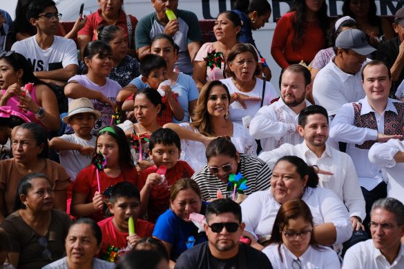 Chetumal.- Cercana a la gente, en territorio y entre las familias chetumaleñas que se encontraban frente a Palacio de Gobierno, la gobernadora Mara Lezama Espinosa, presenció el tradicional desfile cívico-militar con motivo del 215 aniversario del inicio de la Independencia de México