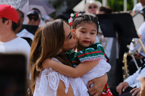 La Gobernadora acompañada de la presidenta honoraria del Sistema DIF-Quintana Roo, Verónica Lezama Espinosa, de los titulares de los Poderes Legislativo y Judicial, el diputado Renán Sánchez Tajonar y el magistrado Heyden Cebada Rivas, respectivamente, bajó del balcón central de Palacio de Gobierno para saludar a las familias asistentes y regalar los tradicionales rehiletes alusivos a las fiestas patrias.