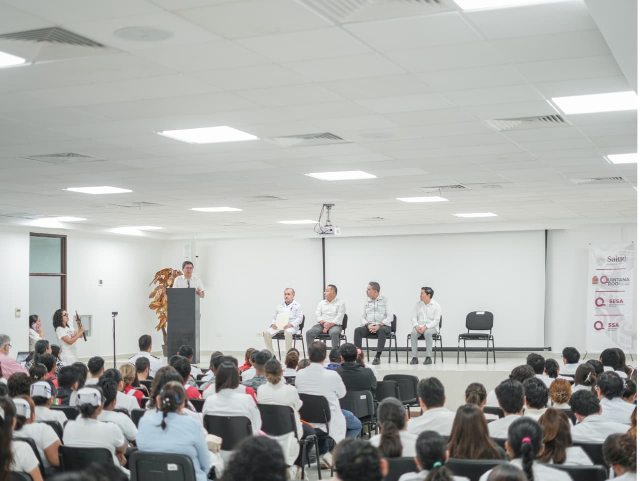 A este evento asistieron el doctor Moisés Toledo Pensamiento, coordinador estatal del IMSS Bienestar; el Dr. Miguel Ángel García Albarán, director del Hospital General “Jesús Kumate Rodríguez”; Luis Alberto Tun, subsecretario de Educación; así como personal de la Secretaría de Marina, Guardia Nacional, Cruz Roja, IMSS Bienestar, IMSS, ISSSTE y estudiantes de medicina de diversas universidades.