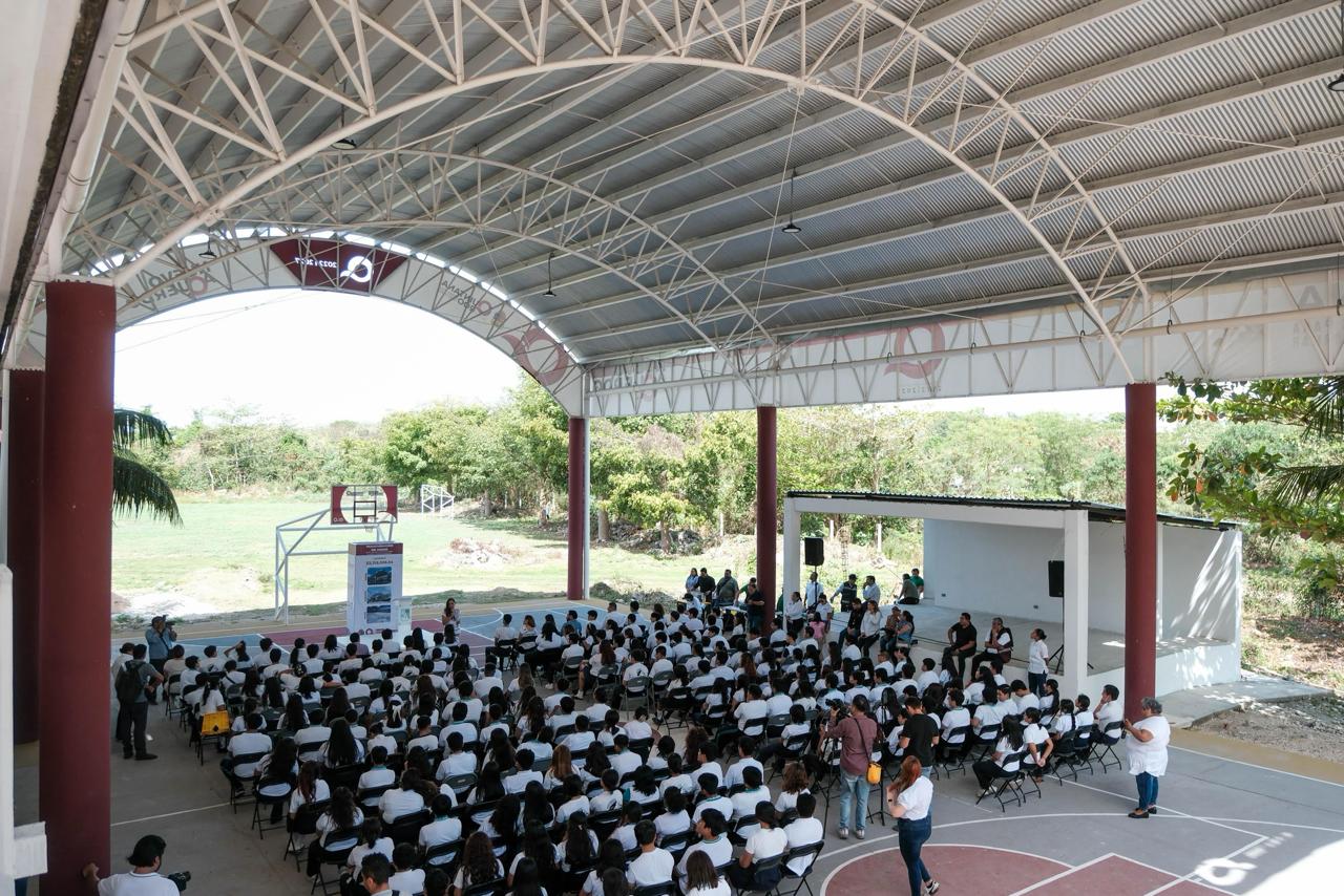 A su vez, la alumna Ivu Nadhkala Durán Huacal, del sexto semestre, a nombre de sus compañeros dijo que el nuevo domo será un lugar para actividades escolares, pero también para el deporte, la cultura. Agradeció a Mara Lezama por confiar y apostarle a las y los estudiantes.