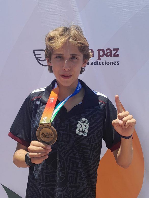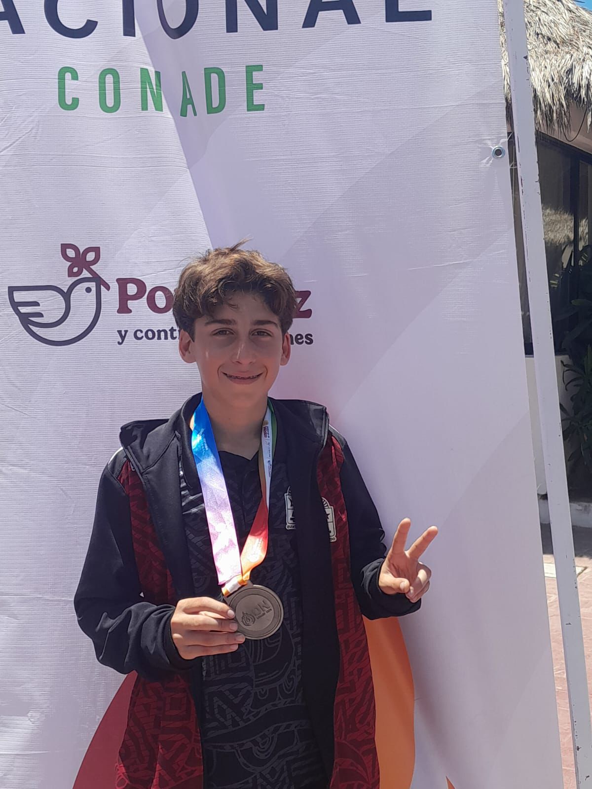 El segundo metal dorado fue por conducto de Nicolás Gómez López, quien tuvo una excelente participación en la prueba de Acuatlón, siendo el primero en cruzar la meta en la categoría 12-13 años, marcando un tiempo de 9 minutos y 23 segundos, para así alzarse como campeón nacional; además, Nicolás forma parte de la Academia de Deportes Acuáticos de la CODEQ y entrena en la Alberca Olímpica de Cancún.