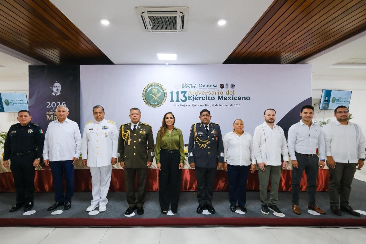 En la ceremonia conmemorativa del 113 aniversario del Ejército Mexicano, realizada en la Guardia Nacional de Ciudad Mujeres, zona continental de Isla Mujeres, encabezada por el General de Brigada de Estado Mayor, Fidel Mondragón Rivero, comandante de la 34ª Zona Militar, la gobernadora Mara Lezama enfatizó que la presencia del Ejército y la Marina es fundamental para resguardar la soberanía en costas, cielos y carreteras, así como para garantizar la paz en el destino turístico más importante de Latinoamérica, el Caribe Mexicano.