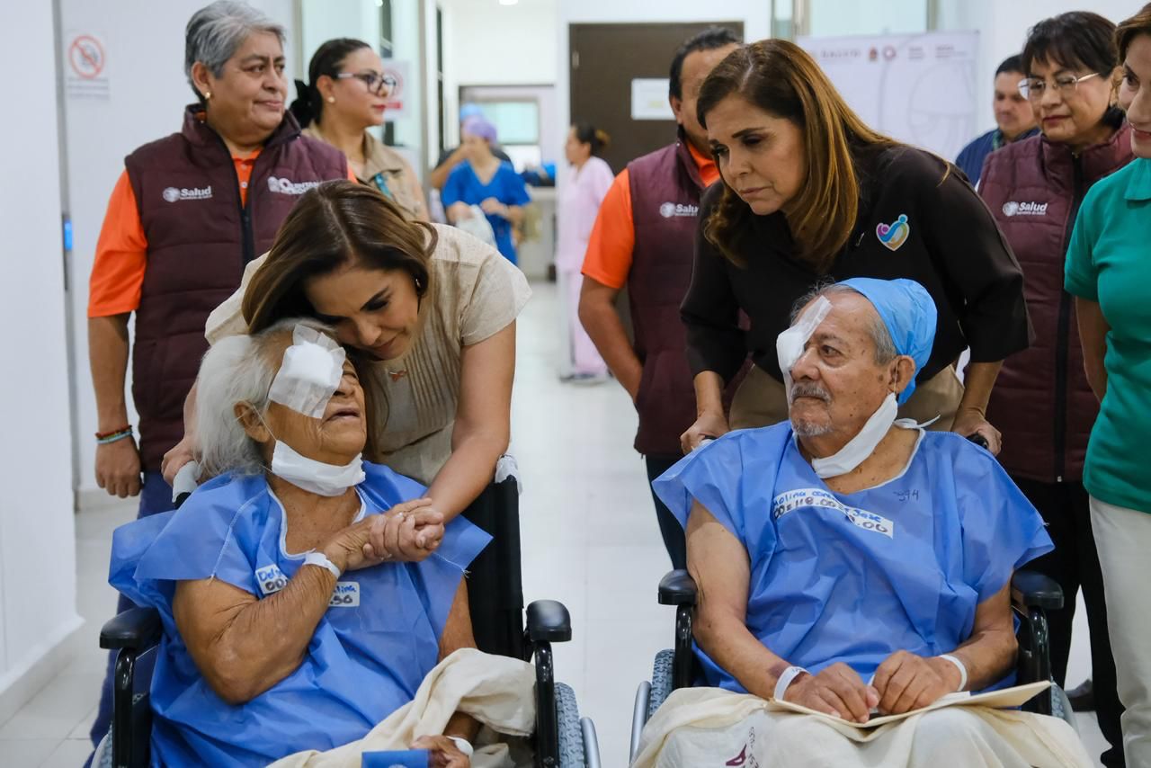 Cancún.- La gobernadora Mara Lezama Espinosa y la presidenta honoraria del Sistema DIF Quintana Roo, Verónica Lezama, encabezaron un recorrido en el hospital “Jesús Kumate Rodríguez”, donde se realiza la cuarta jornada de cirugías de cataratas 2026 para transformarle la vida a pacientes de 9 municipios, al recuperar la visión.